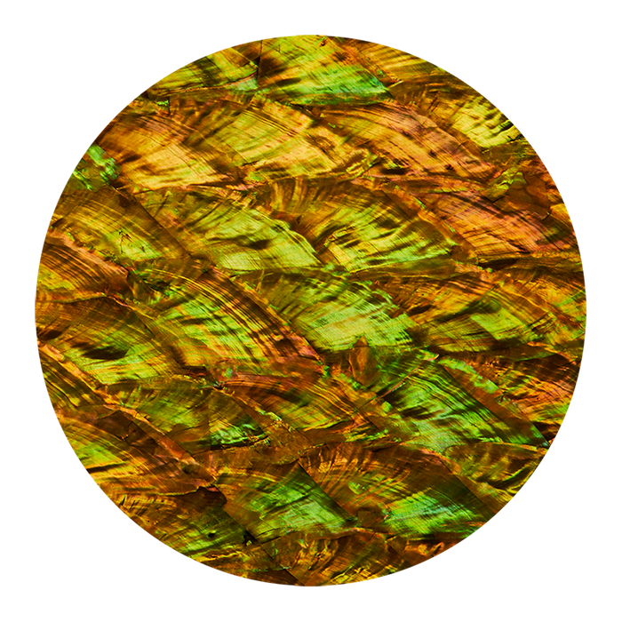 Ocean Shell in an easy to use form. The flat sheet (0.3mm thick) Golden Abalone Pearl tint uses Abalone Pearl as a base with a colour enhanced tint to achieve a shimmering golden colour enhanced by the green tonings. Finish: Gloss. Sheet Size available: 230x130mm, 200x200mm, 300x300mm.