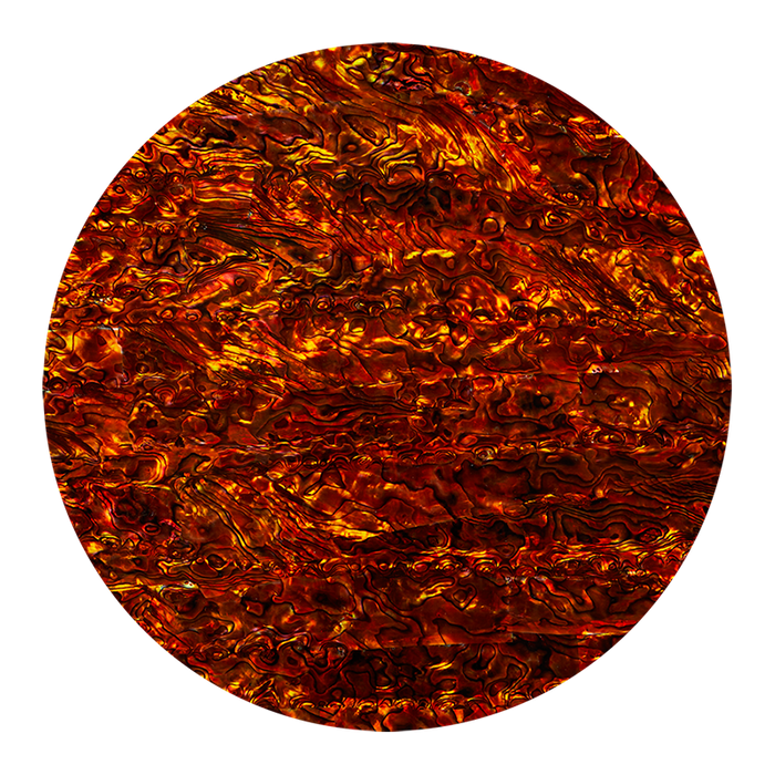Ocean Shell in an easy to use form. The flat sheet (0.3mm thick)Golden Ochre Paua uses Paua as a base with a colour enhanced tint to achieve an Autumn toned result. Finish: Gloss. Sheet Size available: 230x130mm, 200x200mm, 300x300mm.