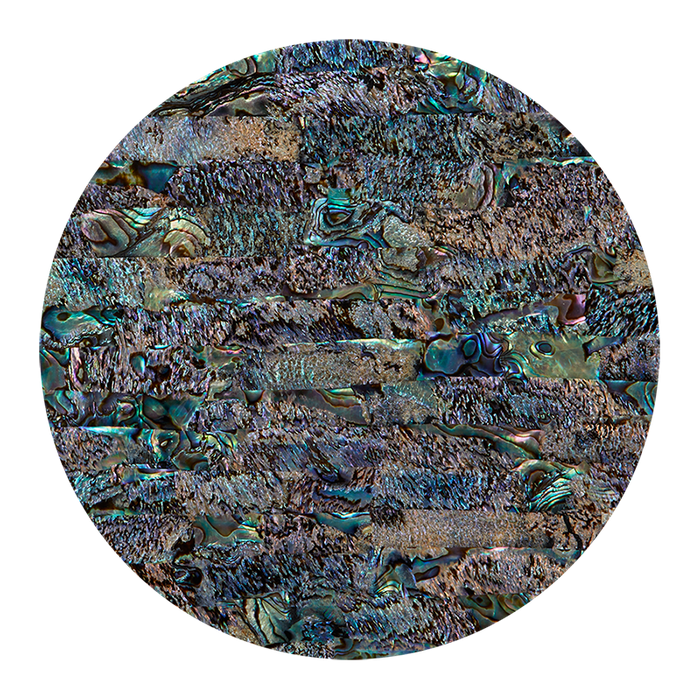 Designed for designers. Light and versatile inlays – our premium shell veneers are functional thin sheets of Mother of Pearl which can be used in jewellery or as decorative inlays in wood, metal or acrylic. Expertly processed, our premium Paua sheets are created from sustainably sourced Luméa shells that are sliced twice: first into strips, then again into feather-like pieces. Technical advice available. The flat sheet (0.3mm thick) recaptures all the pieces of a natural paua shell including the "foot" area which is the striking bronze areas within the shell veneer. Sheet Size available: 230x130mm, 200x200mm.