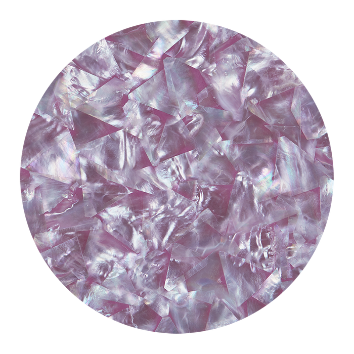 Ocean Shell in an easy to use form. The flat sheet (o.3mm thick) uses White Pearl as a base with a colour enhanced tint to achieve a shimmering amethyst purple colour. Finish: Gloss. Sheet Size available: 230x130mm, 200x200mm, 300x300mm.