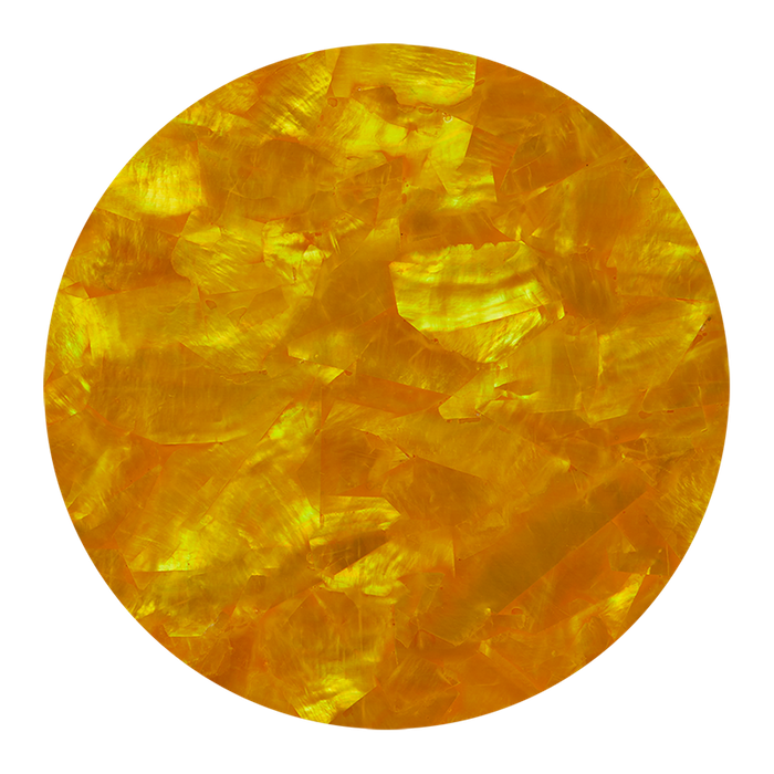 Ocean Shell in an easy to use form. The flat sheet (0.3mm thick) uses White Pearl as a base with a colour enhanced tint to achieve a beautiful reflective citrine yellow colour. Gloss. Sheet Size available: 230x130mm, 200x200mm, 300x300mm.
