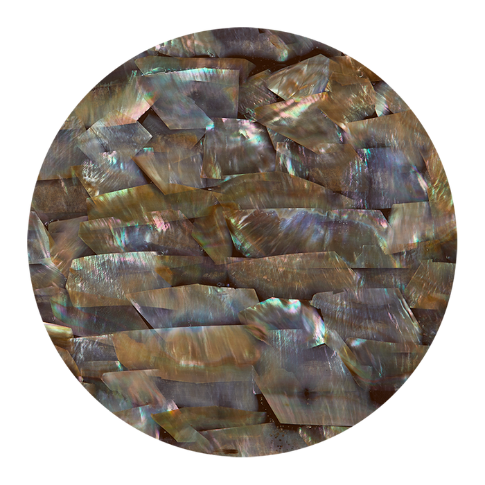 Natural shell veneer in an easy to use form. The flat sheet (0.3mm thick). Wing Oyster shell shell veneer shows off silvery grey and brown tonings. 230x130mm
