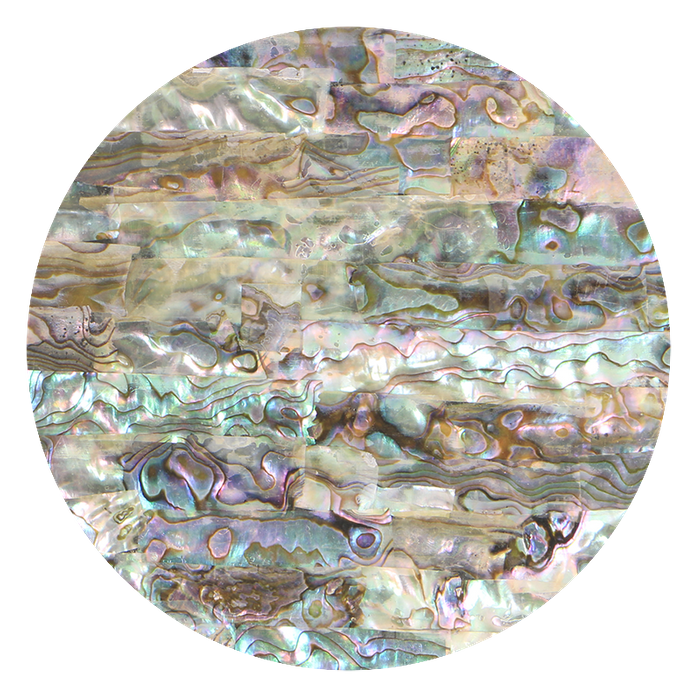 Uncoated shell veneer from Green Ripple Mexican Abalone Mother of Pearl, made into flat sheets. Natural finish, no coating applied; without backing panel. Size 140*240mm. Finished thickness about 0.3mm.