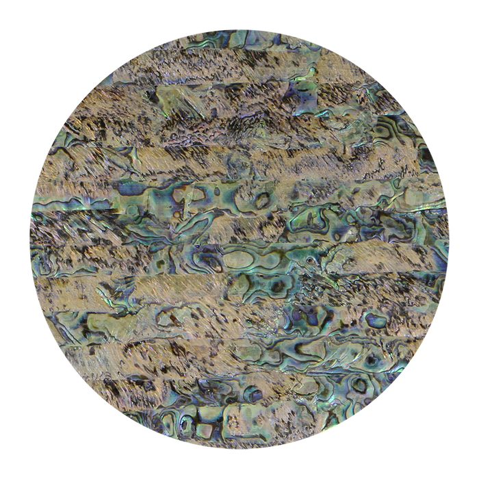 Perfect for inlay, Luméa Uncoated Shell Veneer Sheets are thin semi-opaque flat sheets carefully sliced from the heart (where the meat attaches to shell) of our own quality Luméa New Zealand Abalone Shells. When inlayed against a solid dark substrate such as wood, metal or plastic, the natural blues, greens, silver and pinky peach of the paua shell heart take on more depth and become more vibrant. The strip composition of the slices as well as the natural veining pattern in the abalone shell hides joins between the slices in this sheet.