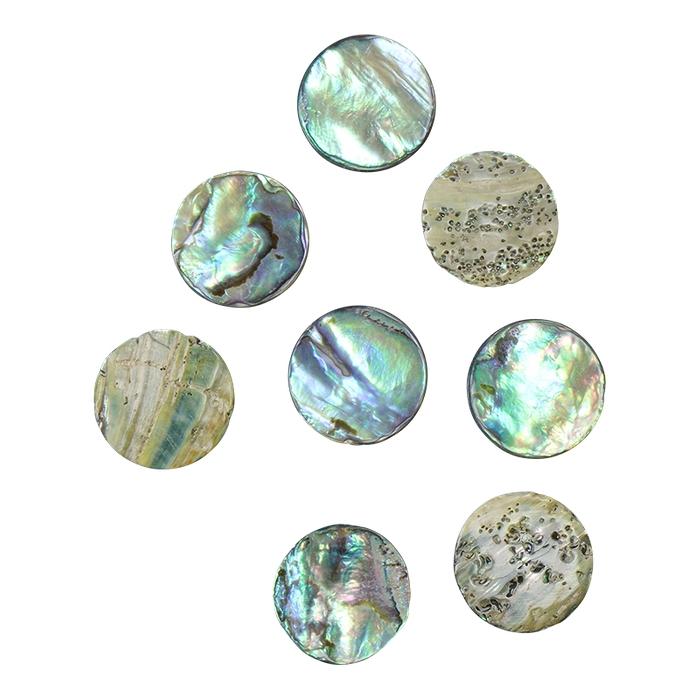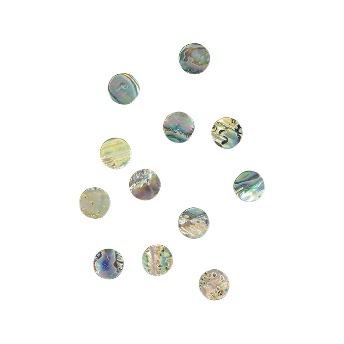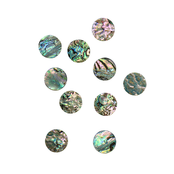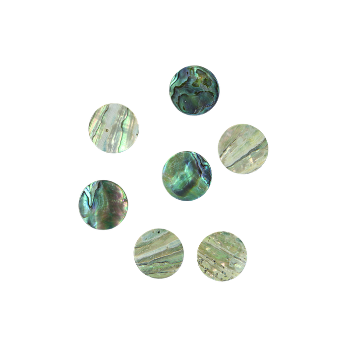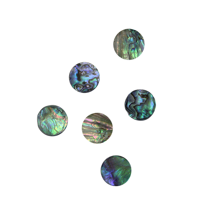 This Paua Shell component is in the form of a slightly curved round shape with natural Paua colours ranging from violet blues through to turquoise and peach tones. It has no holes but can be easily drilled, or set into wood, resin, craft clays or metals. Size available: 10mm, 11.25mm, 12.5mm, 15mm, 20mm, 22.5mm, 25mm, 32mm, 40mm Quantity: per dozen