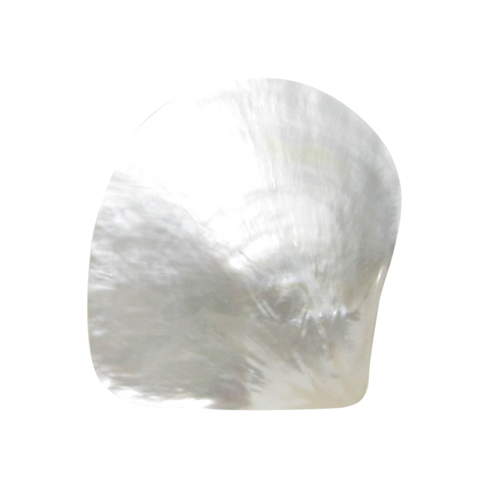 This is a small sized White Mother of Pearl Shell. The natural lime coating on the back is ground off to a fine finish and coated with a clear lacquer. This process reveals the genuine natural beauty and colour of the shell under the lime. Size: Smaller than 90 (3.5") Finish: Polished Gloss